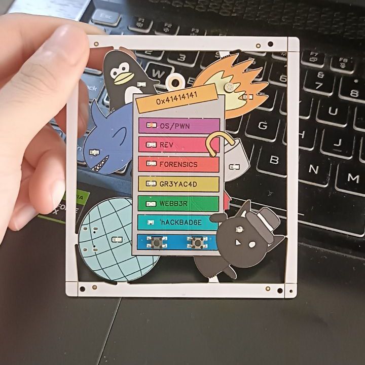 GreyCTF 2024 Finals PCB Badge with artwork, STM32, Unlockable Colour LEDs and CTF Challenges involving embedded peripherals